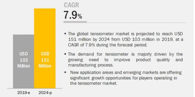 [131 Pages Report] The global tensiometer market is expected to reach USD 151 million by 2024 from an estimated value of USD 103 million in 2019, growing at a CAGR of 7.9% during the forecast period.