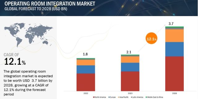 The report Operating Room Integration Market is projected to reach USD 3.7 billion by 2028 from USD 2.1 billion in 2023, at a high CAGR of 12.1% during the forecast period