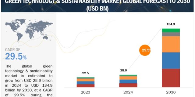 The global Green Technology & Sustainability Market size is projected to grow from USD 28.6 billion in 2024 to USD 134.9 billion by 2030, at a CAGR of 29.5% during the forecast period, according to a new report by MarketsandMarkets™. Recognizing the pivotal role of individuals and green technology companies in shaping the intersection of sustainability and digital transformation is paramount. Informed choices, adoption of sustainable technologies, and support for sustainable implementation collectively pave the way for a greener, more sustainable future where innovation and environmental stewardship harmonize seamlessly.