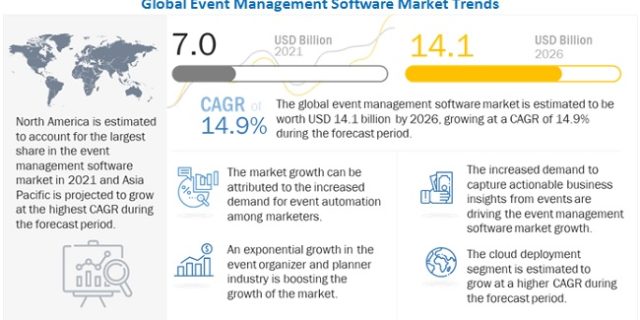 The global Event Management Software Market size is poised to surpassed $7.0 billion in 2021 and is poised to reach $14.1 billion by 2026, at a CAGR of 14.9% during the forecast period, according to new report by MarketsandMarkets. The Event Management Software Market is fuelled …