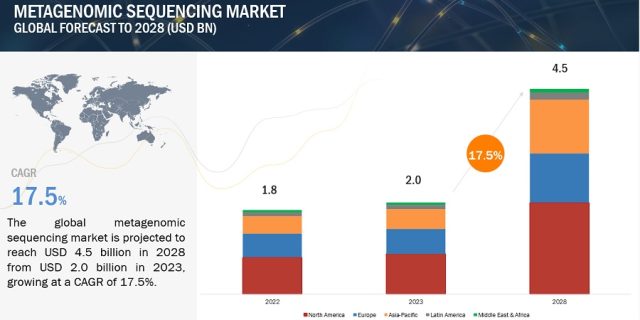 The global metagenomic sequencing market in terms of revenue was estimated to be worth $2.0 billion in 2023 and is poised to reach $4.5 billion in 2028, growing at a CAGR of 17.5% from 2023 to 2028.