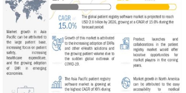 The global Patient registry software market is projected to reach USD 2.8 billion by 2026 from USD 1.4 billion in 2021, at a CAGR of 15.0% during the forecast period.