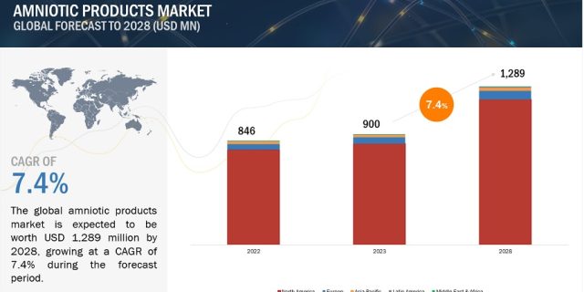 The report Amniotic Products Market is projected to reach USD 1,289 million by 2028 from USD 900 million in 2023, at a CAGR of 7.4% during the forecast period.